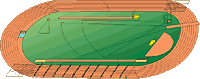 Oval, com 400 metros de comprimento e um gramado no meio,